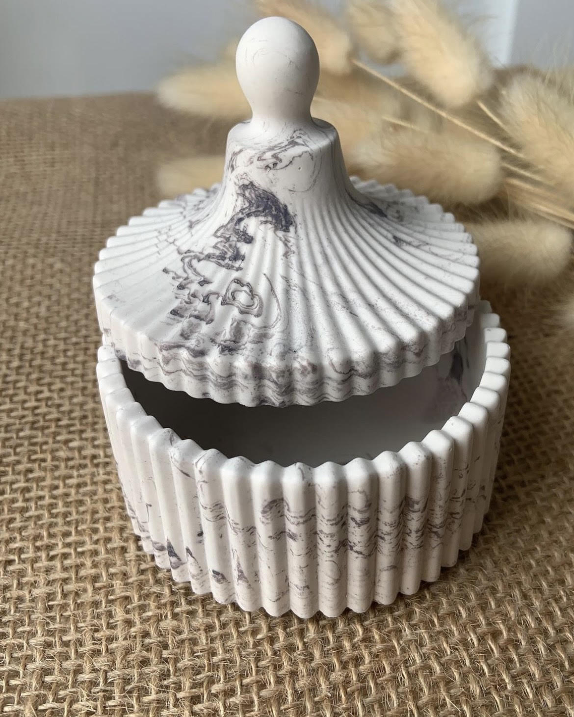 À mi-chemin entre le plâtre et la résine, la Jesmonite est un matériau très intéressant, créé au début des années 1980. Composée à partir de gypse en poudre - une roche minérale - et d’un liquide associant de l’eau et de l’acrylique sans solvant, la Jesmonite est plus écologique que la résine classique.