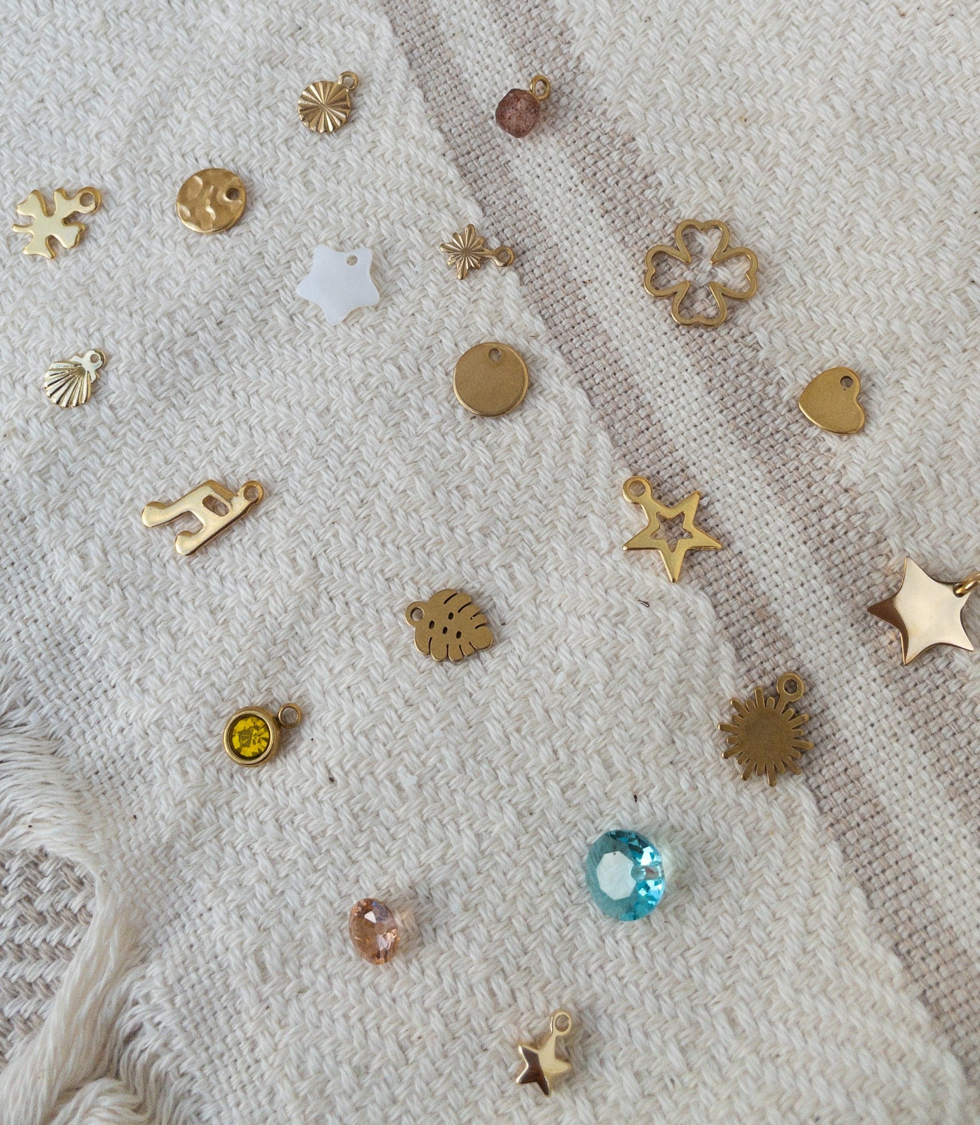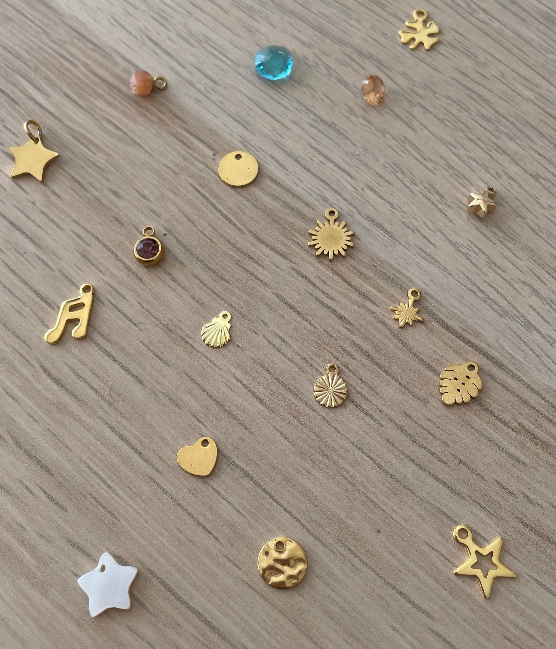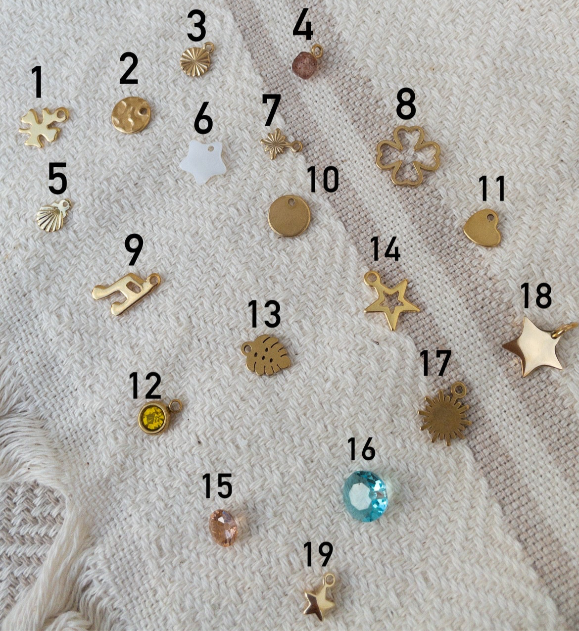 - 19 breloques différentes en acier inoxydable ou cristal de verre à choisir entre 1 et 6 maximum