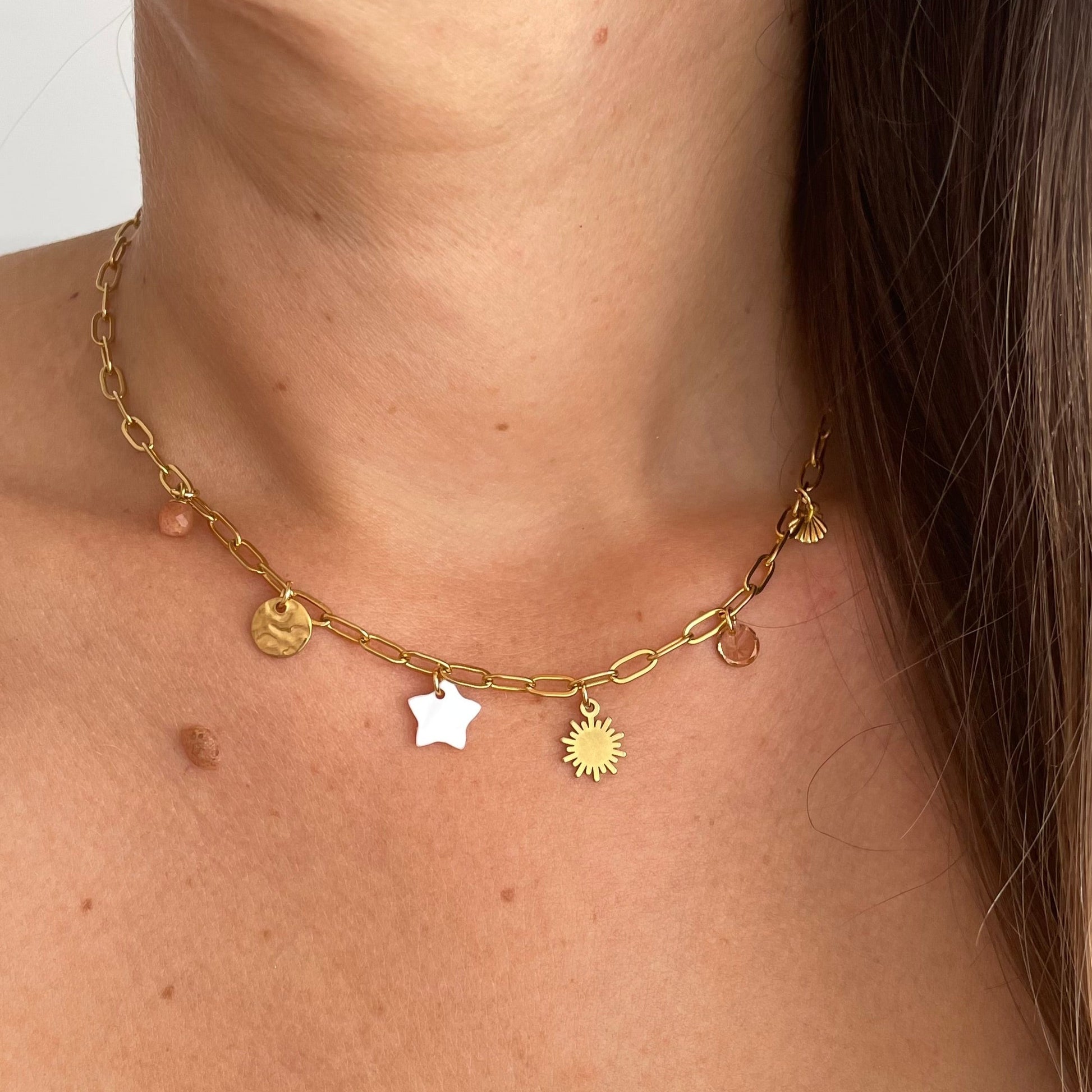 - Collier en acier inoxydable de 38 cm + 5 cm de chaine d'extension