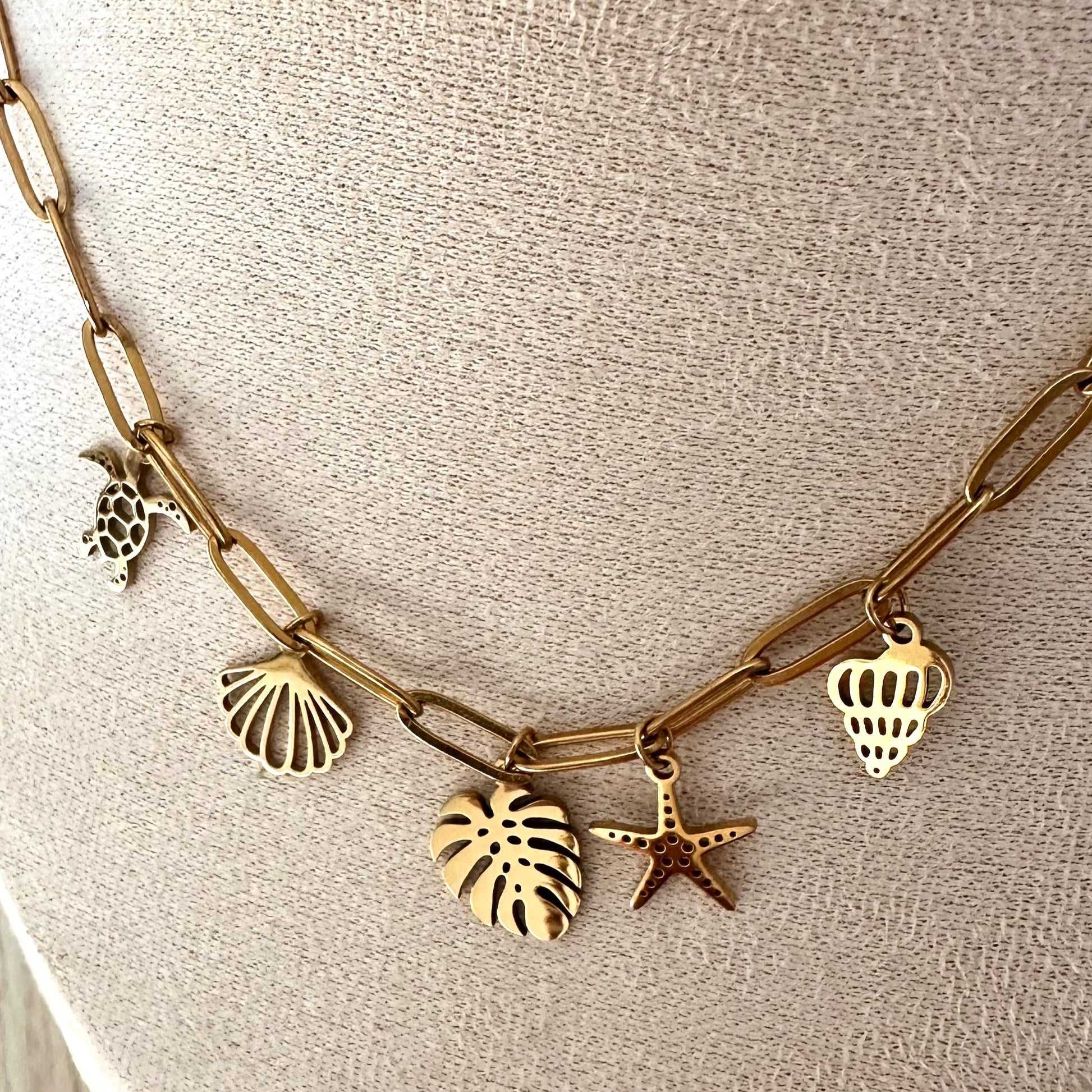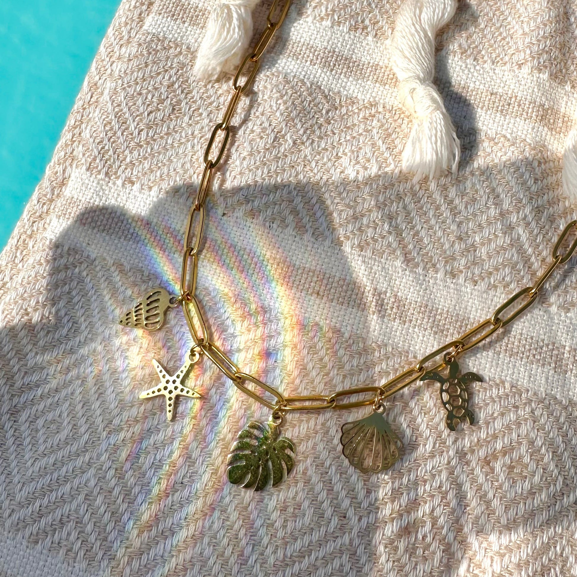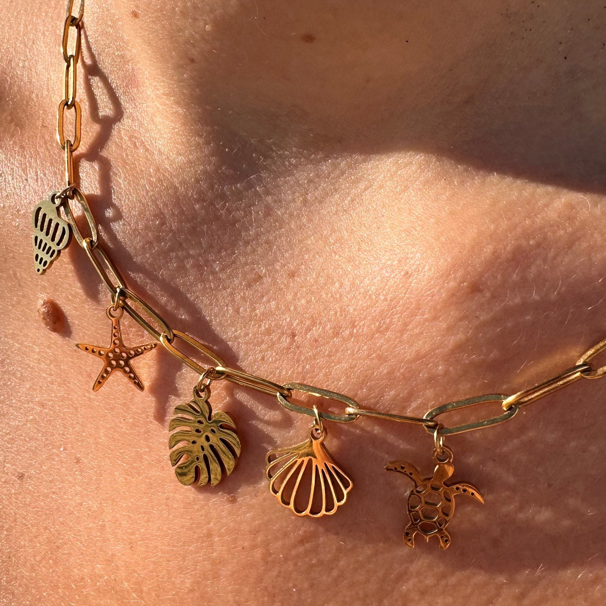 - 5 breloques différentes en acier inoxydable sur le thème de l'été
