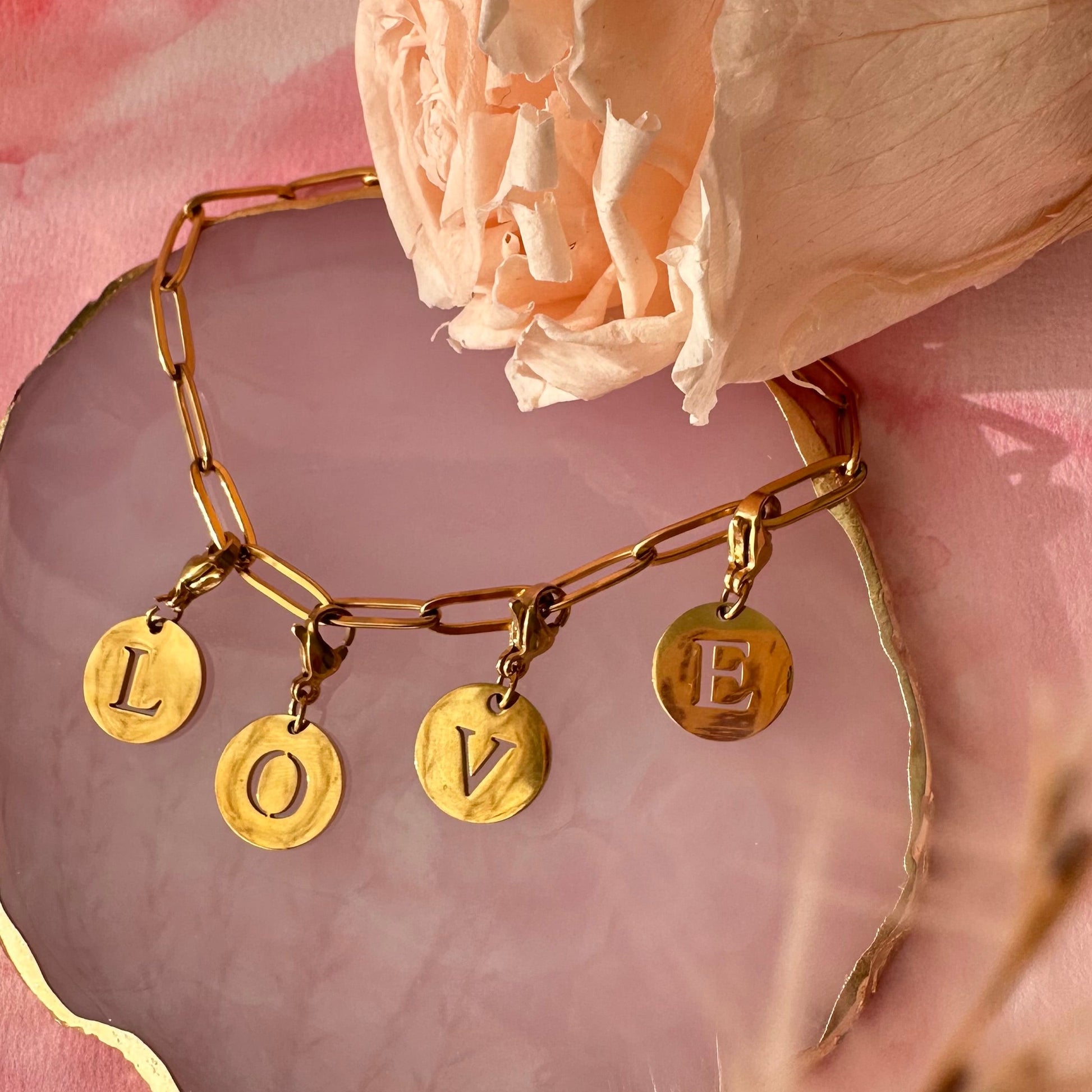 - les 26 lettres de l'alphabet disponibles en charms en acier inoxydable à choisir entre 1 et 6 maximum