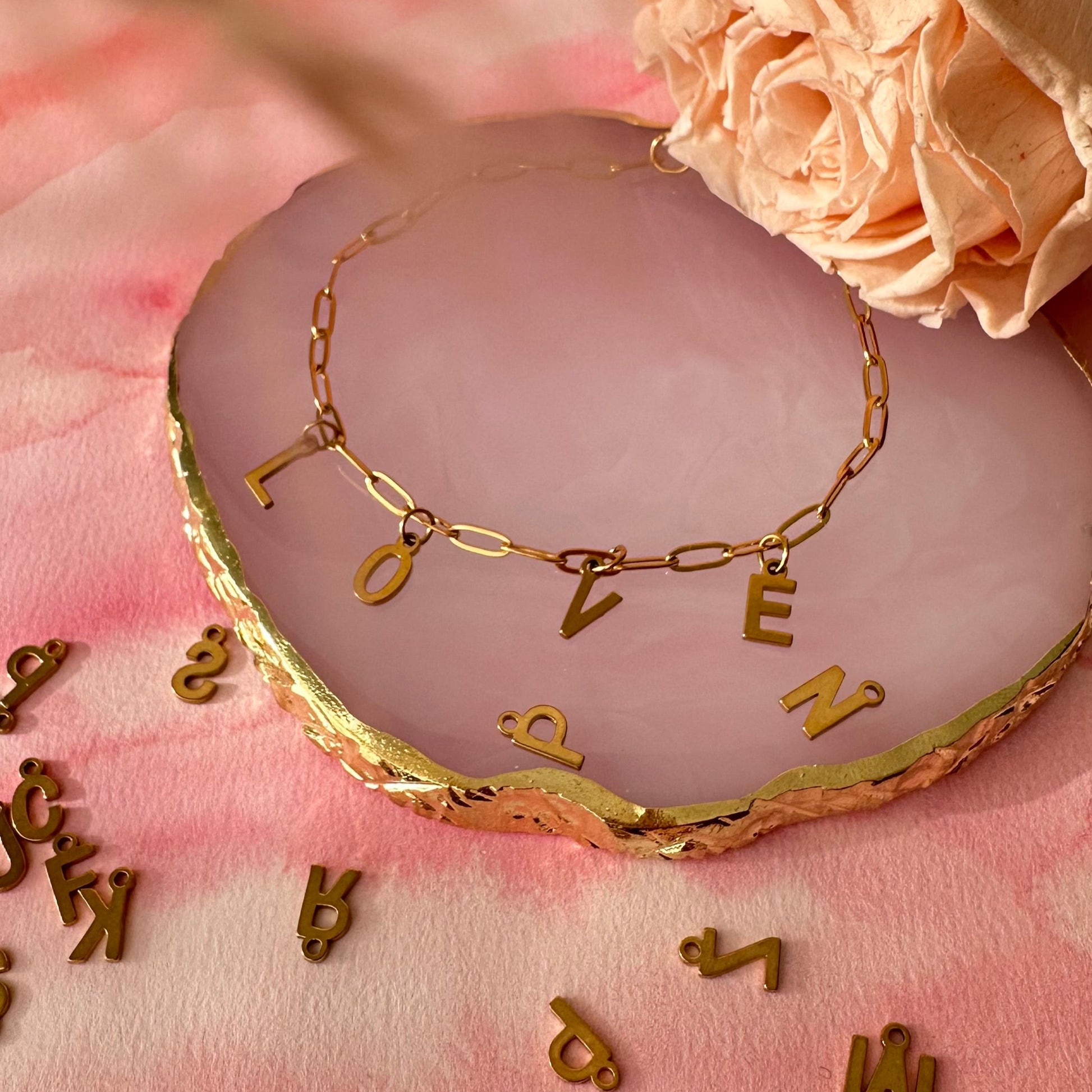 - les 26 lettres de l'alphabet disponibles en breloques en acier inoxydable à choisir entre 1 et 8 maximum