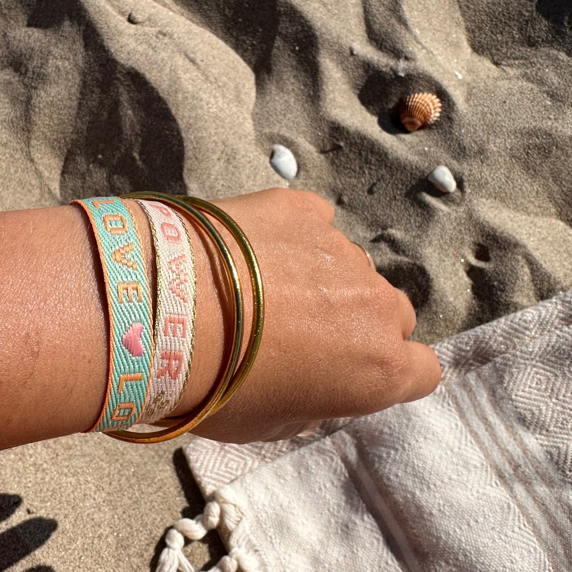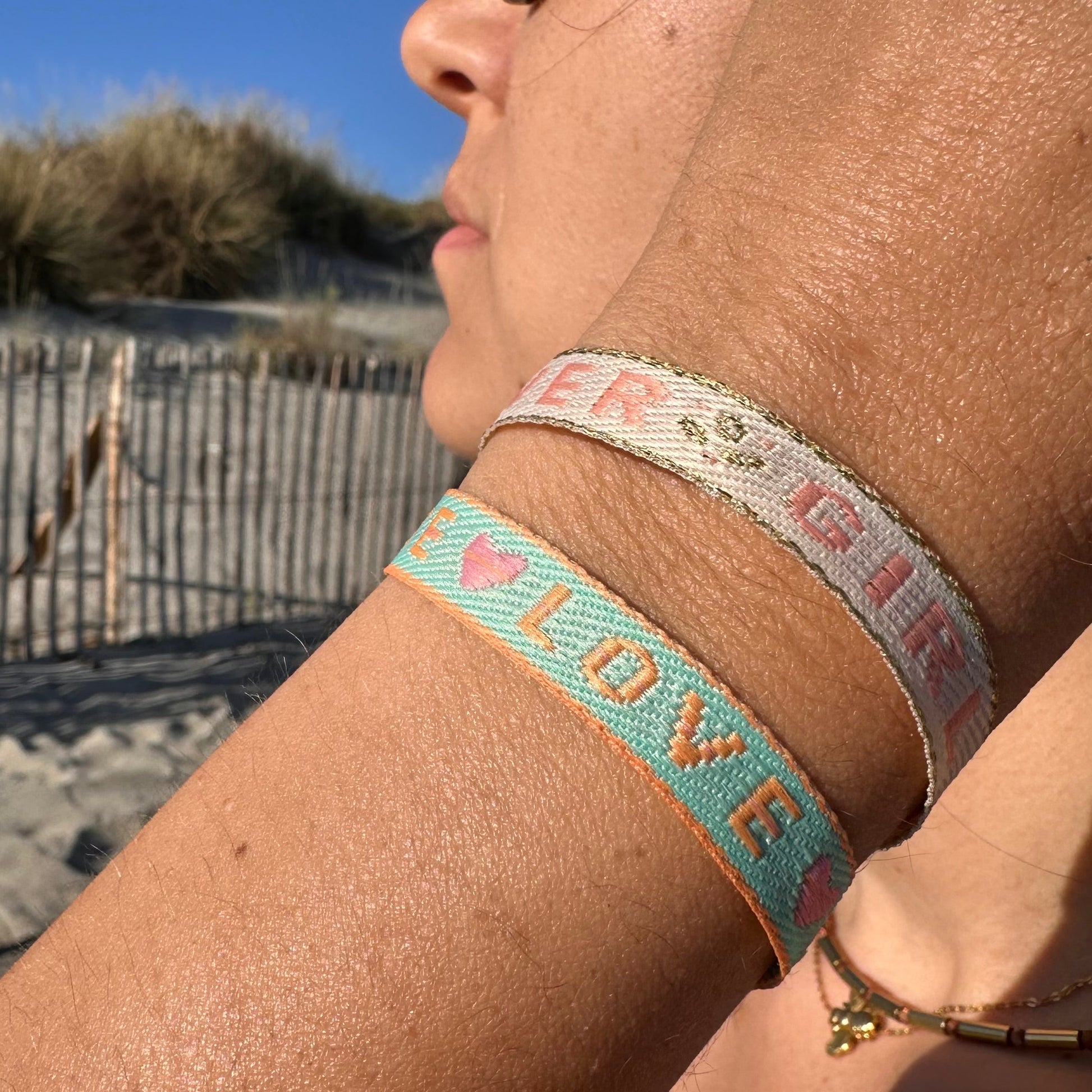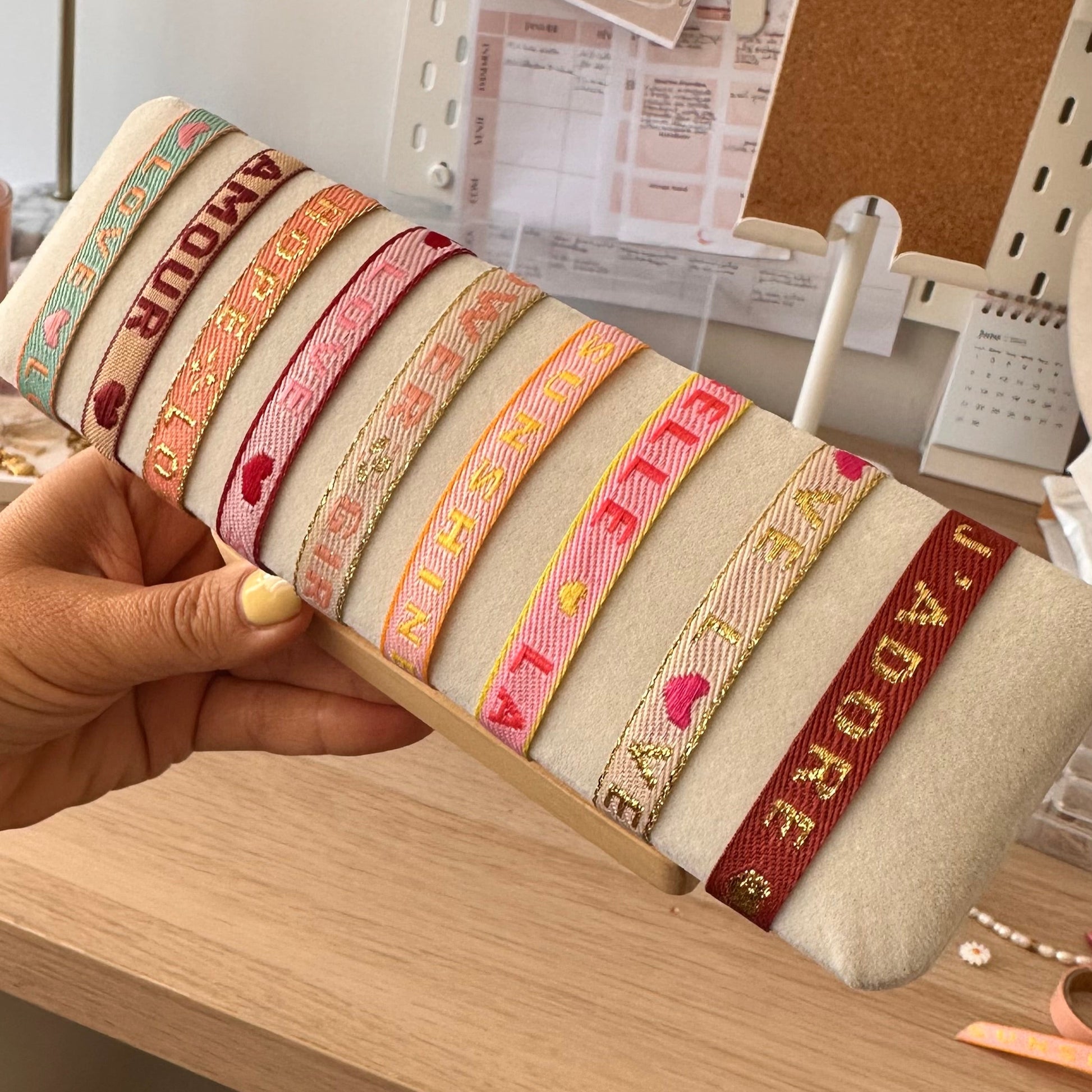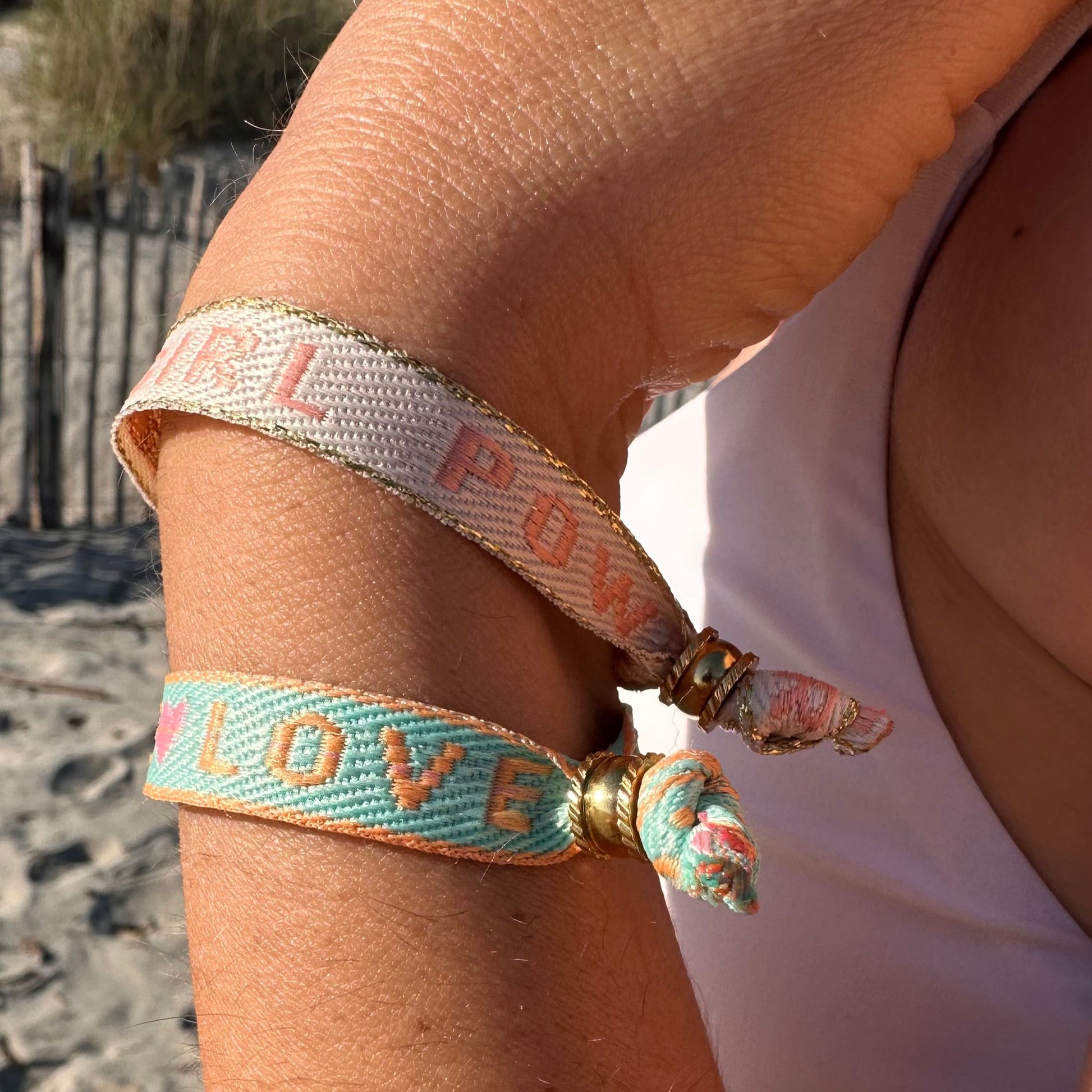 - Bracelet en ruban tissé coloré avec message