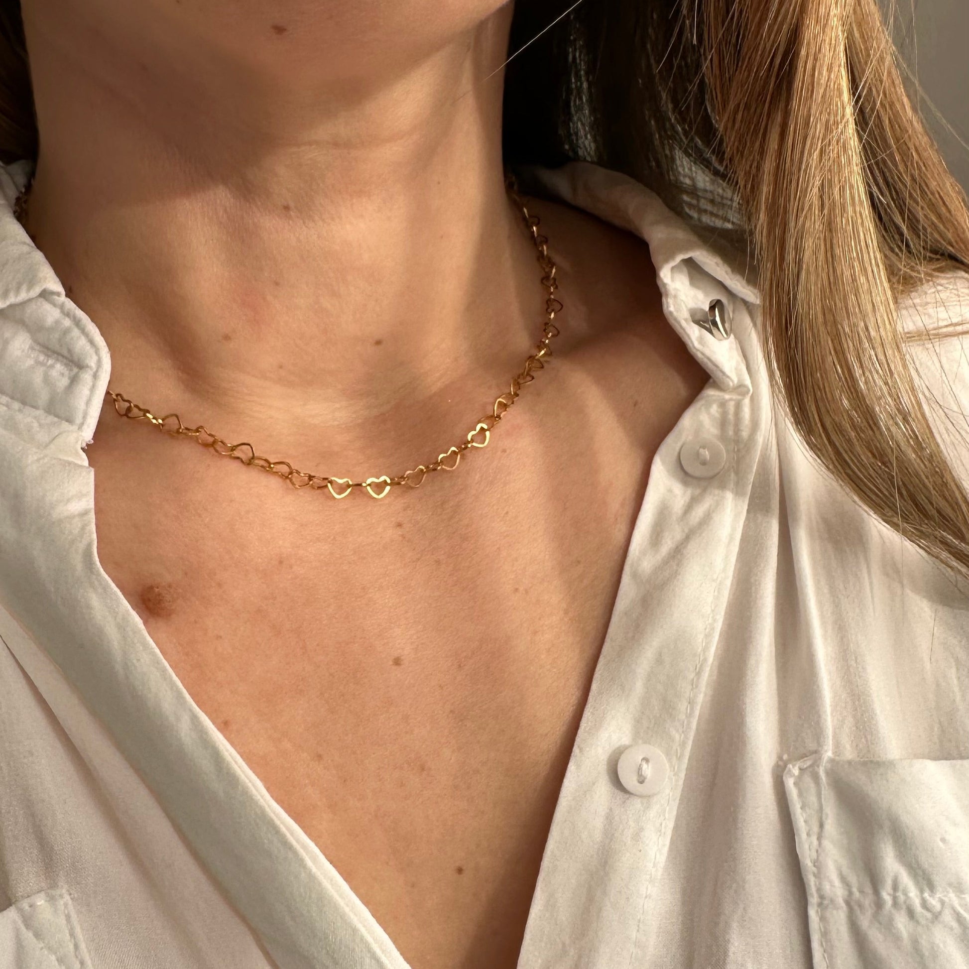 - Collier chaine avec des maillons coeur